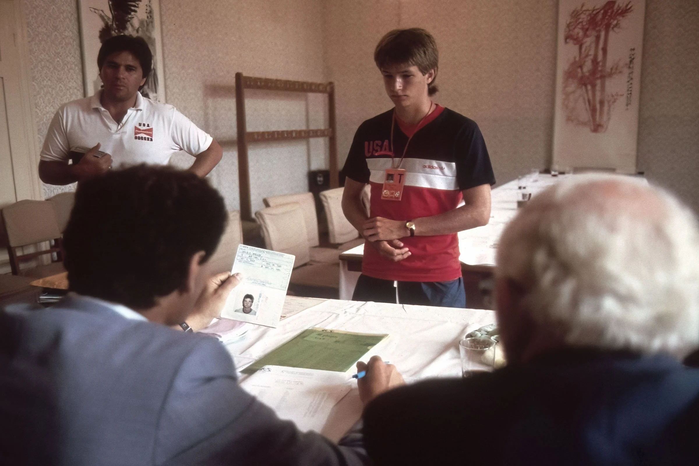 FIFA staff check the age of a player from The USA Team at The 1985 U16 World Cup in China .