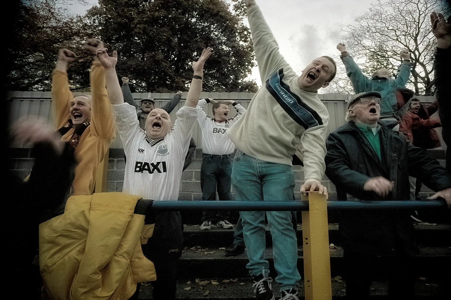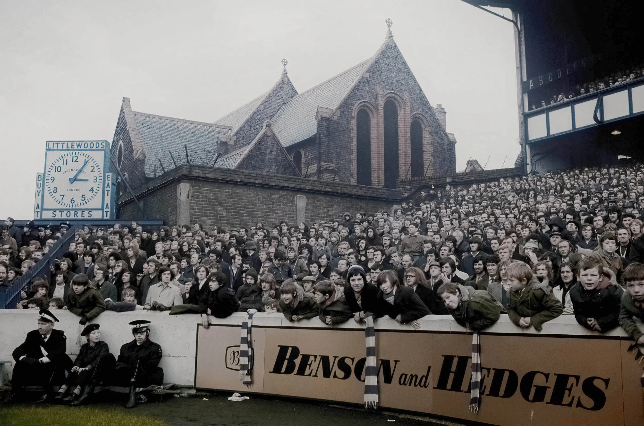 Wandering deeper and deeper into this slick-with-rain-football- pink-and Tetley-bittermen world , gradually the heady scent of rock n roll was replaced by the smell of fried onions, Sloan’s liniment and social club carpets. Dumping Marianne Faithful for Terry Hennessey, Abbey Road for Bootham Crescent, and Monterey for a Third round FA Cup tie at Mansfield. These photos unforgettably trace the visual transformation of the game and to scroll through them is to watch a six decade transformation unfold before your eyes, like some stop-frame animation of a blooming flower. From its almost-black-and-white-even-in-colour years to the screaming children’s TV psychedelia of the modern age. The sky is the colour of a tramp’s vest. At Burnden Park the brollies are out . . . . always!