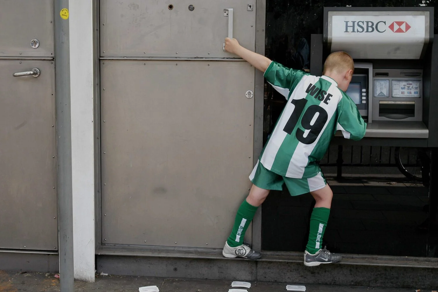 The boy wears a replica shirt of Millwall player Denis Wise (Wise’s agent was Eric Hall)